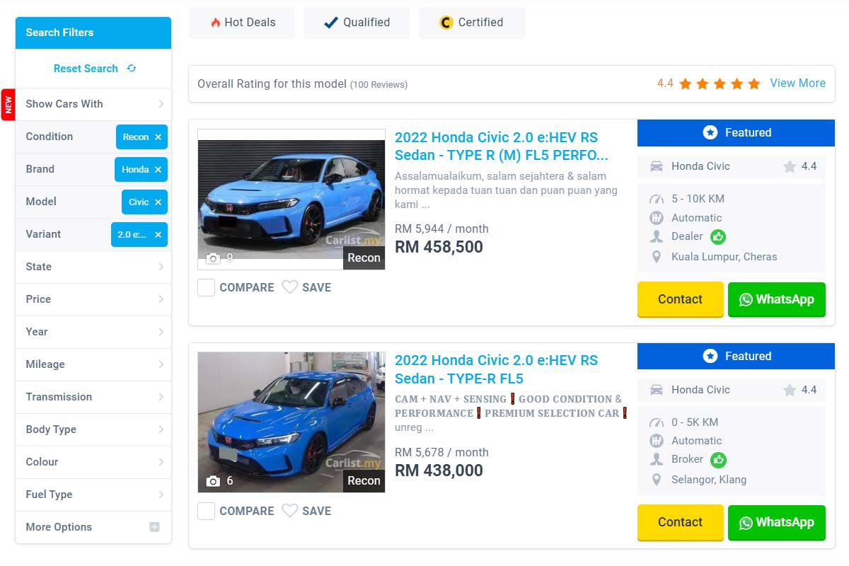 Honda Civic Type R FL5 目前还没有被原厂引进大马贩售,但已经有进口车商把它带到我国市场,这款车基于掀背版车型打造,搭载了经典的红头 2.0L VTEC Turbo 引擎 + 6MT 变速箱,现在只要 RM 438,000 起你就能把纽北最速前驱车带回家。