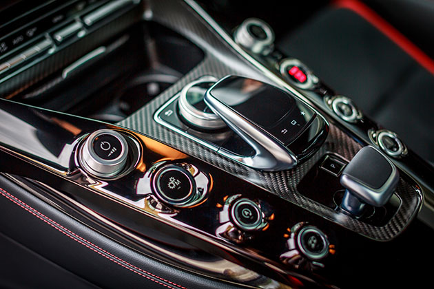 内装方面虽然作为跑车,但是GT S也不缺少作为豪华车应该有的豪华感,整个内装质感非常棒,设计也很有时尚感。中控台中央有一个大型的显示器。在方向盘后面有Paddle Shift,在不少地方都有AMG的铭牌。