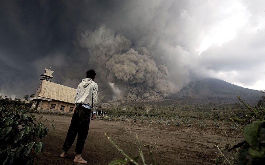 印尼锡纳朋火山(Mount Sinabung)位于北苏门答腊省省会棉兰市西南60多公里处,高度大约2460米,这座活火山自1600年开始一直沉寂,是座休眠火山。2010年8月28日印度尼西亚北苏门答腊省卡罗区的锡纳朋火山(Mount Sinabung)在沉寂了400年后突然喷发,当天凌晨开始喷发的锡纳朋火山已经造成了至少2人死亡。