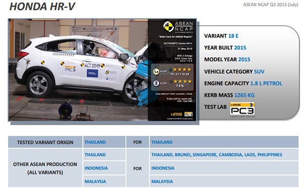 Honda在本地热卖的B-Segment SUV HR-V在最新的Asean NCAP测试中获得五星的好成绩!证明这款本地销量No 1的SUV有着绝佳的安全性!