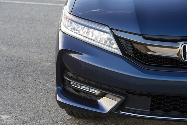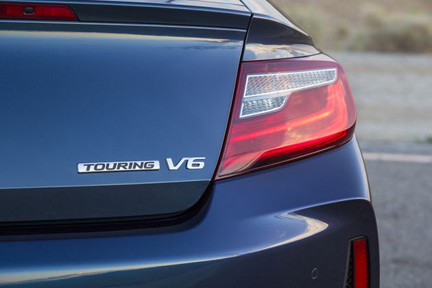 Accord Coupe Facelift的头灯设计看起来跟四门版本非常类似,但是比较纤细,同样的也是采用了类似Acura的设计,另外在雾灯座的设计也做出了小幅改变,借此与Accord四门版本作区别,从车侧看去很明显可以看出是双门设计的轿跑车。但是从车尾看去,Accord Coupe和Accord Sedan的区别就相当大了,Accord Coupe的尾灯面积比起Accord Sedan小了很多,但是辨识度依旧相当高,同样的也采用了LED灯泡,另外双出的排气管让Accord Coupe从后看去跑风更强烈!