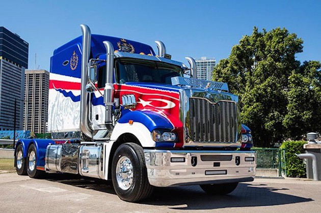 这部Mack Trucks牌子的卡车用象征柔佛州旗颜色的蓝色作为涂装,并且采用纯金打造的老虎造型作为装饰,内饰方面更采用实木作为装饰,并且有6部闭路电视,全车座椅以南非进口的真皮包裹座椅上的皇家勋章更是以金线缝制而成!
