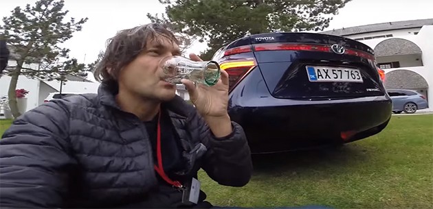 为了证明0污染,国外就有媒体在试驾了Mirai后拿杯子从Mirai的“排水管”中盛了水喝下,证明了Mirai真的0污染(=.=),但是他表示,这个清水有塑胶味,但是依然能喝。。。。