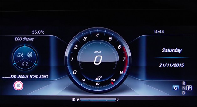 Benz全新E-Class的内装设计可以说非常非常的豪华,首先望过去最先看到的肯定就是中控台中央的大型液晶萤幕,乍看之下这个荧幕用中控台中央一直延伸至仪表的位置,但是实际上他是两个荧幕的。仪表的显示同样也是在这个荧幕显示,这个荧幕没有意外适合S-Class一样,可以显示多种资讯,包括了车辆状况,GPS等等,另外在乘客的角度和司机的角度看这个荧幕会有不同的内容,非常酷炫。
