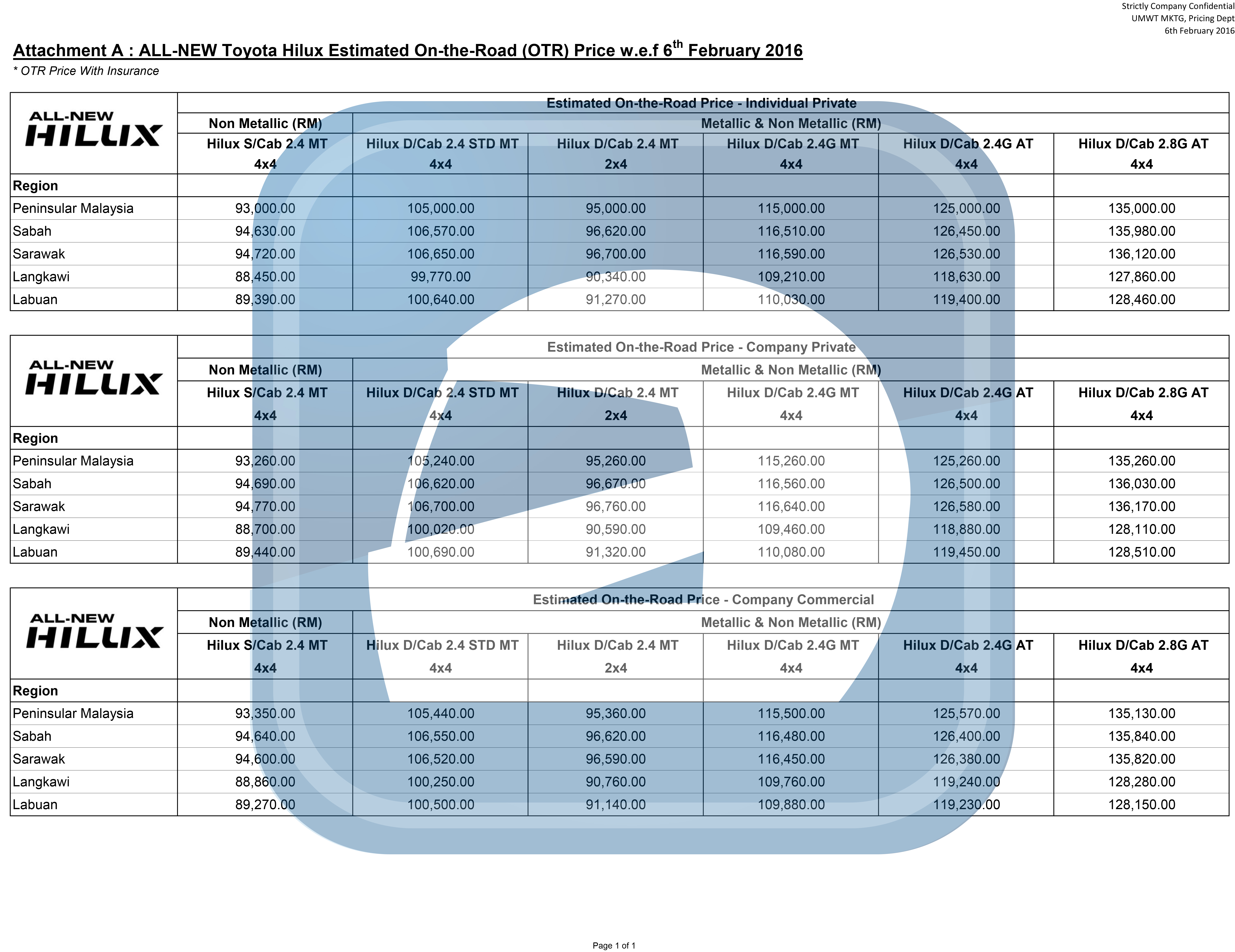 2016 Toyota Hilux 价格正式公布!入门版从RM93,350起跳!