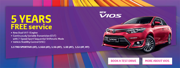 购买 2016 Toyota Vios 可以享有五年Free Service!