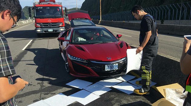 Honda的最新超跑 Honda NSX 刚刚才在台湾上市,开价达到了1280万台币,折合令吉为RM 168万,价格非常的高,而且配额仅有9台,当中天字0号就是Honda Taiwan提供给媒体试驾的车子,而在昨日这款天字0号就在借出试驾的时候车祸了,这应该也是NSX的全球首起车祸!