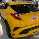 至于Modellista的版本,从正面看的话你会被它的水箱护罩所吸引,因为由Modellista所设计的水箱护罩采用了哑黑以及镀铬材质做设计,感觉非常的粗旷,接下来在前保险杆的空力套件Modellista采用了Dual Tone的设计,包括了原本车体的黄色还有钢琴黑的材质做搭配,整体的视觉效果非常棒,在车侧的话你可以看到有一个非常大面积的黑色材质做点缀,让C-HR的跨界风格更为浓厚。