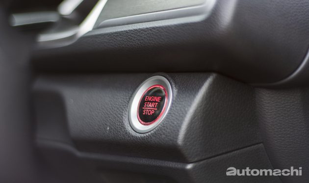 在Civic FC上全车系都标配了数位化仪表和引擎启动键,这个引擎启动键很特别,在你还没有启动车辆的时候它会闪烁白灯,在你启动了引擎后它就会变成红色,另外一点Honda Malaysia很厚道的地方就是Civic FC在我国全车系都是有数位化的仪表,在泰国1.8的版本只有普通的仪表,所以不管你买到哪一个等级都有可以享有一样的配备,不过换档拨片只会出现在1.5L Turbo的版本。