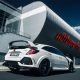 Honda Civic Type R 是基于目前的Honda Civic Hatchback打造的钢炮,原厂的代号为FK8R,在外型上Civic Type R和早前在巴黎车展上展出的概念车非常类似,包括在车头和车尾上有着Type R的铭牌,Honda的厂徽变成了代表性能的红色,在前后保险杆和侧边有着很夸张的空力套件,这主要是因为空气力学还有下压力的设计,接着尾部有一个非常巨大兼且造型夸张的大尾翼,并且有夸张的中置三出排气管。在引擎盖上还有一个进风口主要是帮助引擎室内的2.0L VTEC Turbo引擎可以有效的降热。至于在刹车系统上原厂依旧会采用红色的Brembo刹车卡钳,毕竟性能车款除了加速性能要出色外制动性能也不能少。