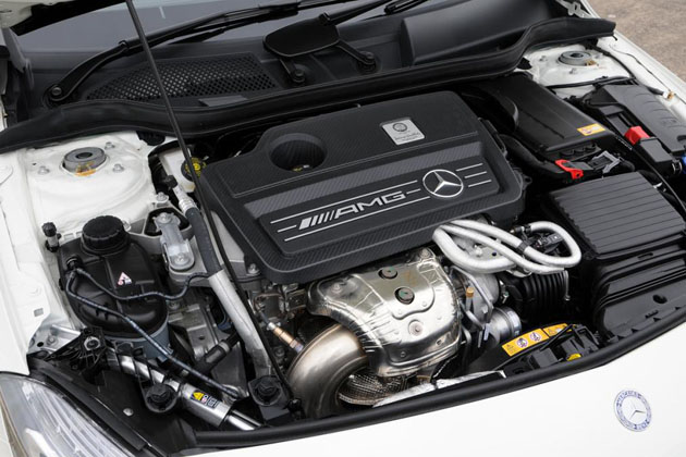引擎的配置上原厂为A45搭载了号称为史上最强2.0L涡轮增压引擎M133(这个有点争议,因为在英国贩售的Mitsubishi Lancer Evo X FQ440上的最大马力已经超过了450 ps),在小改款前的最大马力为360 hp,峰值扭力450 Nm,小改款之后为381 hp,峰值扭力475 Nm,搭配的变速箱是7速的双离合器变速箱,它的0-100加速表现为4.6秒,几乎已经跟AMG 43系列持平了。另外A45上还保留了4Matic全轮传动系统,因此在循迹性的表现上也是相当不错。