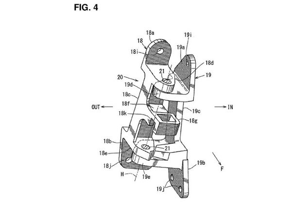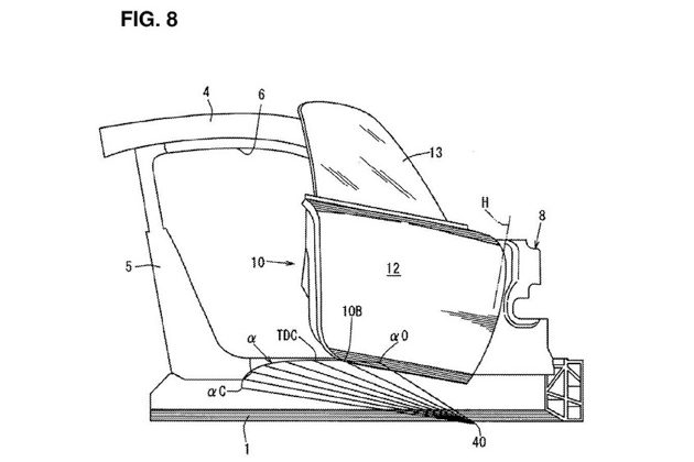 至于不直接套用超跑的『鸥翼门』的原因主要在于采用气压式阻尼的设计会增加重量,Mazda也在专利申请文里提到将会简化此车门的结构设计,以达到轻量化的目的。根据专利图显示,Mazda将会采用特别设计的扭力杆来支撑车门最大角度的开启,值得一提的是Aston Martin也采用类似的车门设计于旗下所有车型,并可作向上12度的开启,而Mazda在专利申请则提到将会向上作15度的开启。