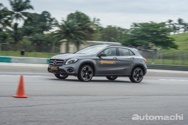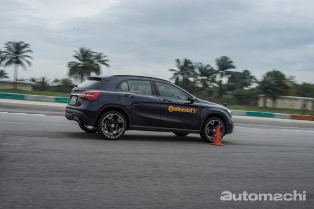 第二环节就是紧急切换车道,同样的现场有装备MC5和MC6的C Class让我们测试,同样的我们必须以时速80在不踩刹车的情况下更换车道,这一点就是测试测验多功能胎面给予MC6操控性表现的进步。在装备MC6的C250上我们在时速80的时候可以很轻松地切换而不撞到傍边的障碍物,至于MC5嘛则是灾情连连,所以证明了MC6对于操控性的表现还是蛮巨大的,对付一些刁钻的路况是游刃有余的,当然最后还是必须看你开的是什么车款。