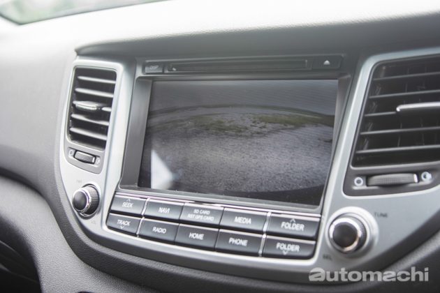 另外还有一点我不得不吐槽的是Tucson的倒车摄像头在倒车镜的位置,跟Saga一样,我不是很明白为什么会出现这样的设定,因为Tucson并不是没有大屏幕,如果倒车摄像的影像可以出现在这里会更好,而最令我惊讶和傻眼的是Tucson的前置摄像头,惊喜的是前置摄像头在泊车的时候真的很好用,傻眼的是这个前置摄像头的映像显示是在触屏主机,重点是画质也不好,所以这里让我对Tucson的内装扣了不少分数。