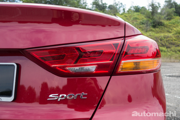 首先从外形说起,相比上一代 Elantra MD 的流水式线条造型, Elantra AD 采用的是 Hyundai 新一代的流体雕塑2.0设计语言,改用更为阳刚的硬线条式设计,整体看起来更为成熟稳重;原厂在Elantra 2.0L 及 1.6L Sport 版本上稍微刻画出一些差异,包括了设计不同的头灯组(2.0L 为普通卤素大灯而1.6则是Bi-Xenon HID),LED尾灯设计也有不同,同时保险杠以及轮圈设计也有所不同,另外 Hyundai 新一代的6角形水箱护罩在两个版本上设计也稍有不同。老实说,小编个人还挺喜欢这一代 Elantra 的外型设计,颇有成熟魅力的特质。