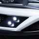 这组名为 Prussian Blue 的空力套件其实是带有运动化气息的轻VIP风格,并非纯正的VIP改装,因此并没有造型夸张的空力套件,取而代之的是较为斯文高贵的设计;首先可以看到的是车头加装了带有LED日行灯与网状格栅设计的前唇,而Camry的招牌V字形水箱护罩也被熏黑成亮黑色。