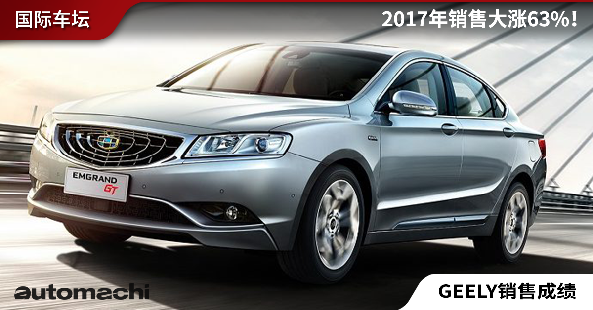 Geely 2017年销量大涨63%,2018年目标158万辆!