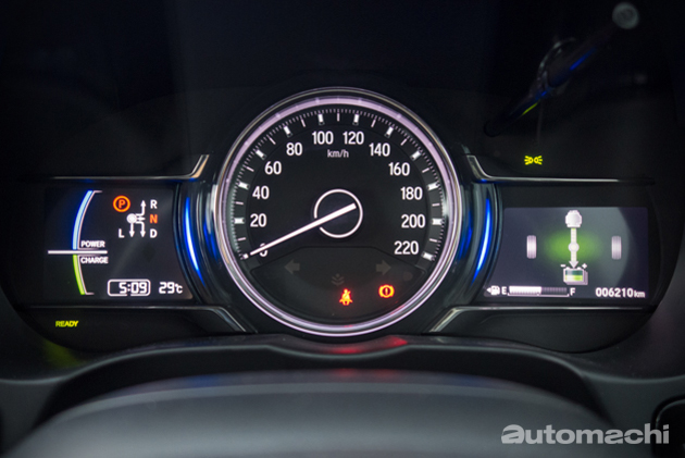 内装可以说是 City Hybrid 较多差异的地方,首先可以看到的是造型独特的电子排挡杆,在视觉上看起来非常炫酷,比起普通版 City 有一种更 “高级” 的感觉,不过在操作上可能需要一些时间才能适应,一旦上手它可是相当地好用;另一个 City Hybrid 独有的是仪表盘设计,在传统的时速表两侧各有一个彩色液晶荧幕,除了档位以外还可显示电池状态以及其他的行车资讯,功能相当丰富。