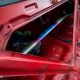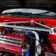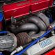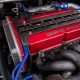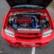 打开引擎盖,里面躺着的正是当年的经典名机 4G63T ,由于当年日本政府的法令因此原厂将这具引擎的最大马力限制在280hp ,当然这辆红色EVO 5 自然不可能还维持在这个匹数上,在换上了 EVO 8 的涡轮及 HKS 272 高角度凸轮轴后,加上日系涡轮改装车必用的 HKS SQV 泄气阀,以及重灌 ECU 行车电脑后,最大马力来到了400hp的境界!为了让额外的动力更好地释放到四个轮子上,车主也升级了 EVO RS 版本的变速箱及后轴,搭配 1.5 Way 的限滑差速器。