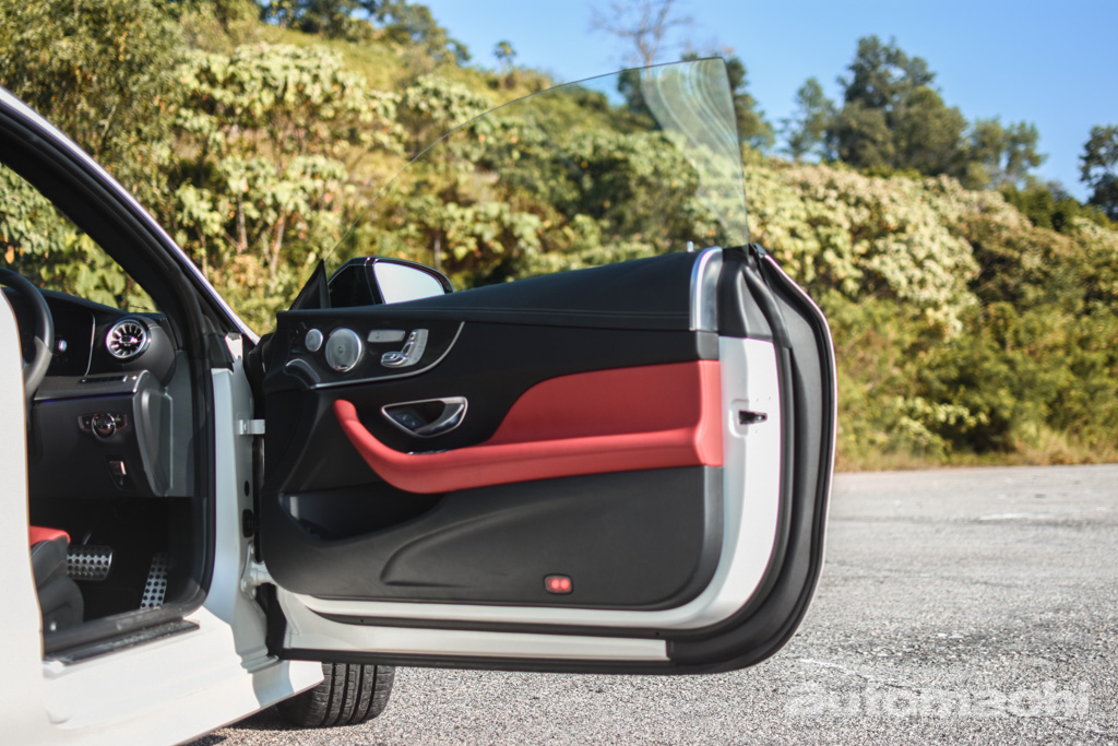 E300 Coupe Edition 1 其中一个吸引人的地方就是无窗框的车门设计还有无B柱的设计,无窗框就是 Coupe 车型必备的设计之一,确实这个无窗框设计让整辆车看起来有不一样的感觉,开出去的话在你开门的一瞬间是逼格满满,所以我个人非常喜欢这样的设计,而无B柱就是一个比较特别的地方了。在车窗还没有降下的时候看起来跟一般的车型不太一样,但是在前后的车窗都降下之后特别的地方就出来了,如果说耍帅 E300 Coupe Edition 1 还真的是挺合适的。