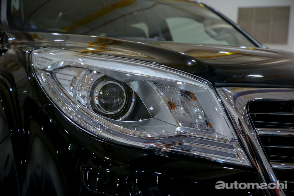从外观上看来, Haval H9 是一款采用非承载式车身设计的全尺寸 SUV 休旅车,车身尺寸为4,856 mm x 1,926 mm x 1,900 mm,轴距长达 2,800 mm,身形比起 Toyota Fortuner 还要稍大一些。根据现场的 Haval 职员表示,展出的这款 H9 为外国版本,而稍后我国版本的 H9 在配备上会有些不同,因此这辆 H9 其实是上锁的,而外观方面的配备也将会与我国版本有所不同,因此目前我们看到的尚不能作准。