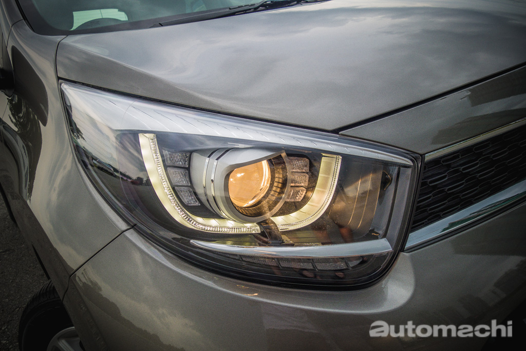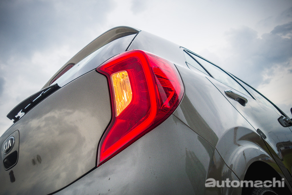 在外形上,新一代的 Picanto 看起来其实和上一代车型有点相像,不过仔细看的话其实新车的整体造型比起上一代更加精致,而且还有很多时髦的设计,像是内置LED日行灯及鱼眼大灯的头灯组采用了相当立体的细节设计,而保险杠两侧的雾灯也多了更精致的镀铬装饰;至于尾灯组同样采用时下流行的LED灯条设计,看起来很有质感之余,也提高了夜间行车的安全度。在车身尺寸方面,新一代 Picanto 的尺码为3,595 mm X 1,595 mm X 1,485 mm,轴距为2,400 mm,虽然比起上一代车型的轴距多了15 mm,但是和主要对手 Perodua Axia 相比,这款A-segment入门小车还是少了50 mm,差距相当大。