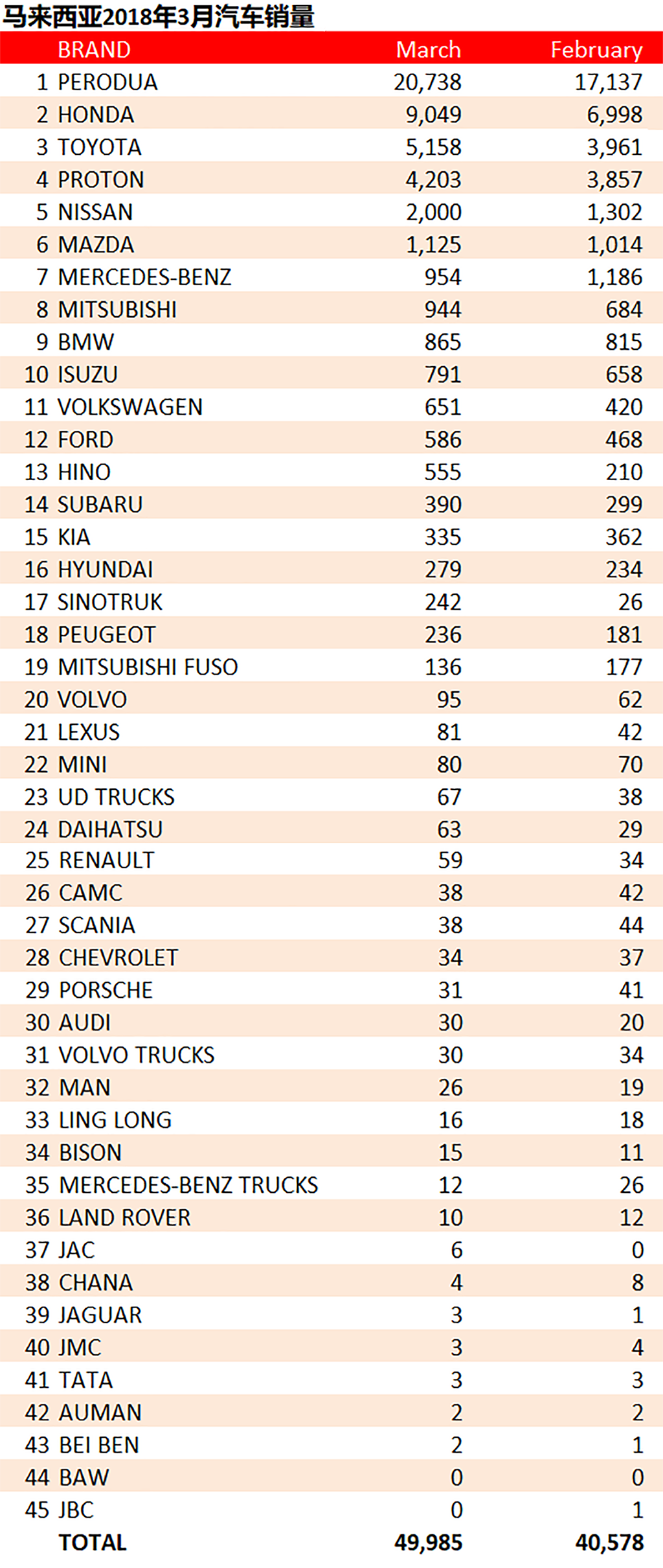 而豪华品牌方面,尽管 Mercedes-Benz 依然稳坐销量冠军位子,不过来到3月份的销售成绩依然有所下滑,这回更跌破1千只卖出954辆,跌幅达20%;而紧随在后的 BMW 的销量则小幅上升,由2月份的815辆提升至3月份的865辆,多卖了50辆新车。此外 Volvo 及 Lexus 的销售成绩在3月份皆有所上升,看来在豪华品牌方面唯独 Mercedes-Benz 在3月份遭遇滑铁卢,不过相信接下来在新一代 A-Class 抵达我国后,局面会有所改变!