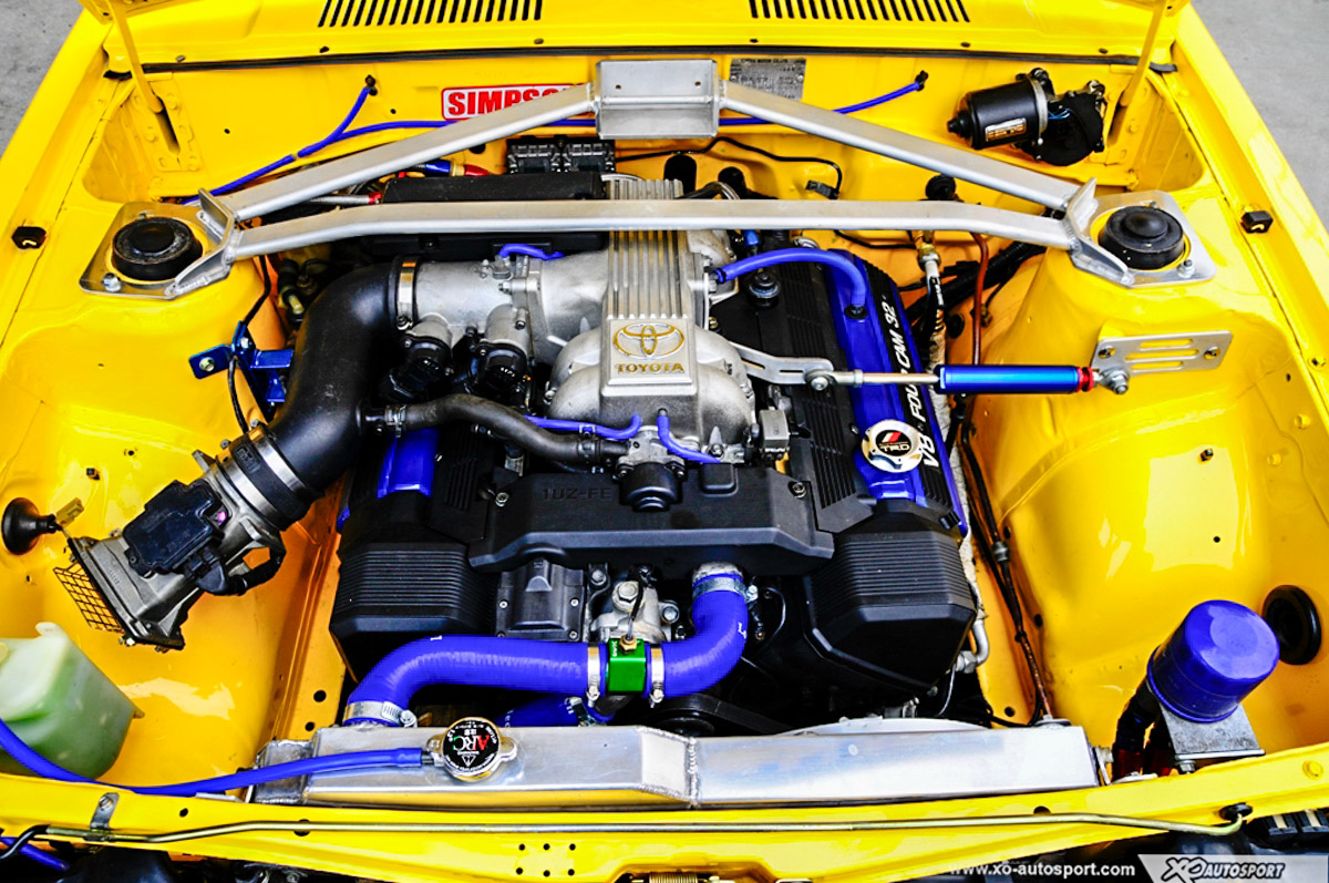 作为第四代 Corolla 的 KE70 ,也是 Toyota 最后一款采用后轮驱动设置的 Corolla ,由于FR的关系,加上玩起来较为经济,也因此成了不少欲学习漂移的车友入门上手的首选车款。通常这类 KE70 都会选择移植来自“豆腐车” AE86 的 4A-GE 引擎来“飘一飘”,不过今天小编带来的这辆 KE70 就较为特别了,因为它搭载的是一具代号为 1UZ-FE 的 4.0L V8 引擎!