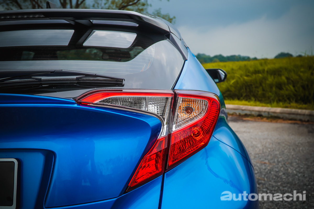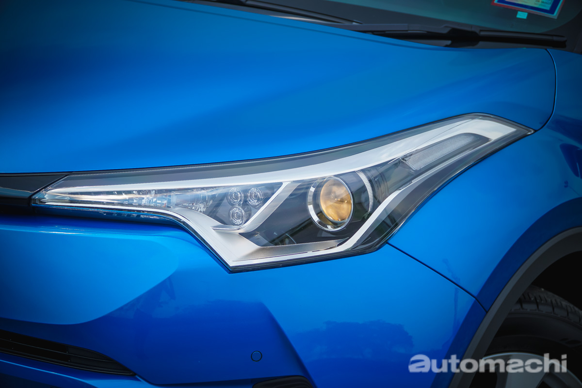 严格来说我国的 2018 C-HR 并不是高配,而是中配,在外观上很多顶级版车型才会出现的我们都没有,例如序列式的LED方向灯还有LED灯组等等都没有出现在我国的 2018 C-HR ,在我国市场的 2018 C-HR 只有日间行车灯是LED,其余都是卤素灯泡,这样看起来难免小器了一点。而在轮圈上我国版本的 2018 C-HR 同样也是采用低配车型的设计,至于那个很好看的轮圈我们只有寄望未来 Toyota Malaysia 会引进吧!