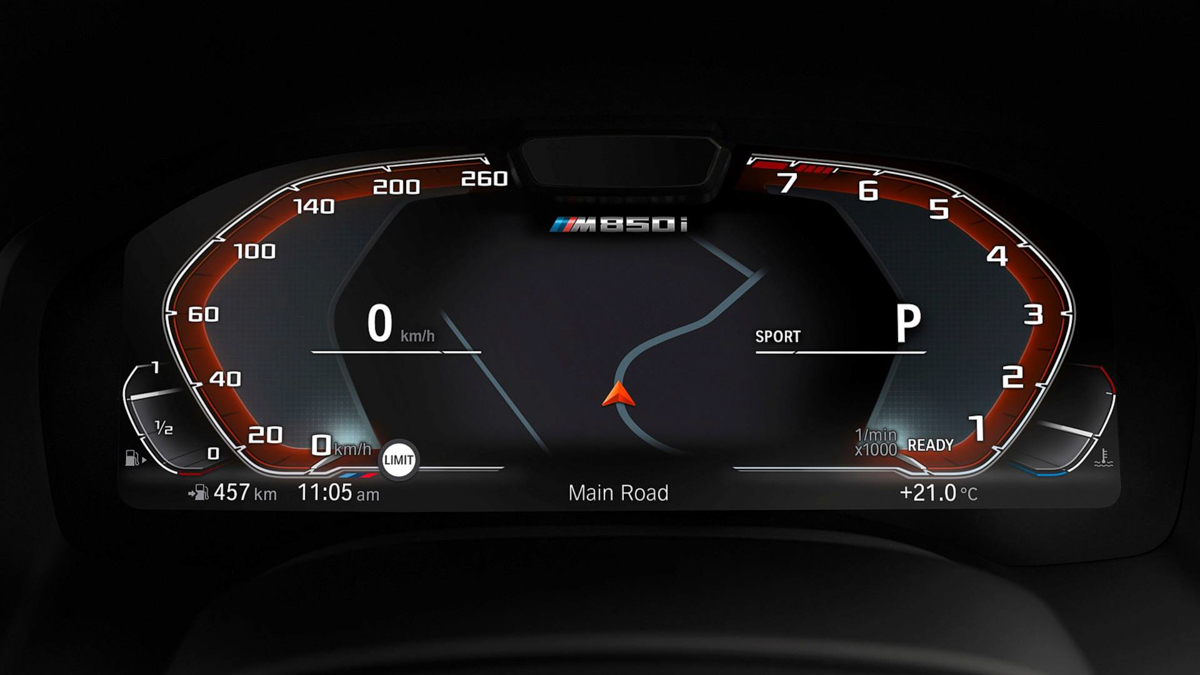 内装部分也是和以往的 BMW 很不一样,采用了新一代的仪表板设计,其中复古式的空调出风口设计看起来为视觉质感加分了不少。此外,新一代的 8 Series 也备有10.3寸的全液晶仪表盘,以及中控台上方12.3寸的大荧幕资讯娱乐系统,车主还能选配升级无线充电插座、 Bowers & Wilkins Diamond 环绕音响系统,你甚至还能升级不锈钢的饰板以及玻璃制的排挡杆!