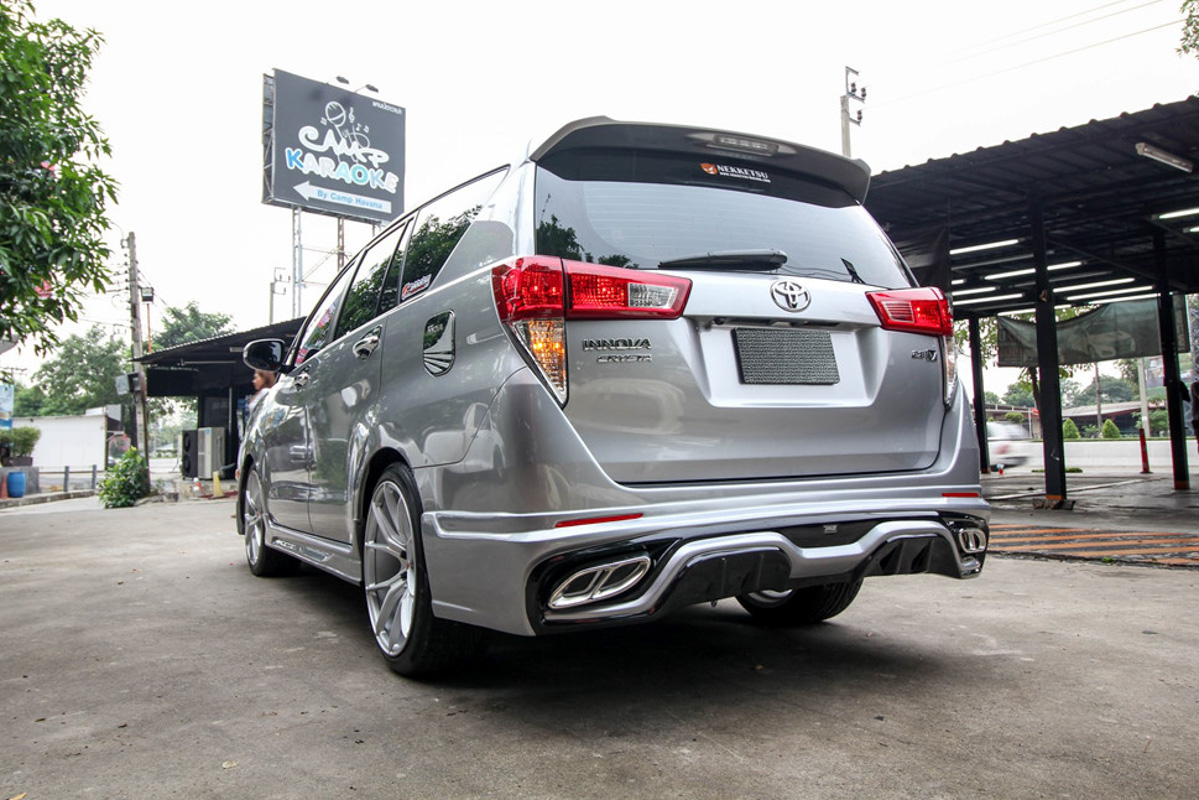尽管车头能够模仿 Lexus ,不过车侧与车尾就不能了,但是改装厂家依然还是为这辆 Innova 安装了大片式的侧裙,以及造型相当夸张、备有假双出排气尾管设计的后包围(小编个人不懂得欣赏这样的设计),再搭配超大尺寸的双五幅式运动轮圈,以及将车身大幅降低,令这辆 Innova 看起来其实还颇有运动化的感觉。根据厂家的报价,这整套客制空力套件要价大约 RM 7,000 ,包含了前保险杠、侧裙、后包围以及一些小部件。花个7千块就能变身成为走形的 Lexus ,有没有 Innova 车主要考虑看看啊?科科~