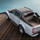 在外观上,最抢眼的莫过于源自 Maybach S650 Coupe 的大型水箱护罩及帅气的保险杠设计,让 X-Class 顿时看起来更为杀气,同时改装厂也重新设计了后保险杠,以及加装了更阳刚的轮拱设计,再大幅降低车身及搭配同样来自 S650 Coupe 的大轮圈,看起来更为运动化之余也增添了不少贵气。值得一提的是,Carlex Design 也大量采用了碳纤维材质来进行点缀,无论在水箱护罩和轮拱,还是后视镜都可以看见碳纤维的踪迹。此外,原先用来载货的后车斗也变身成以柚木打造的平台,大幅提升奢华程度。