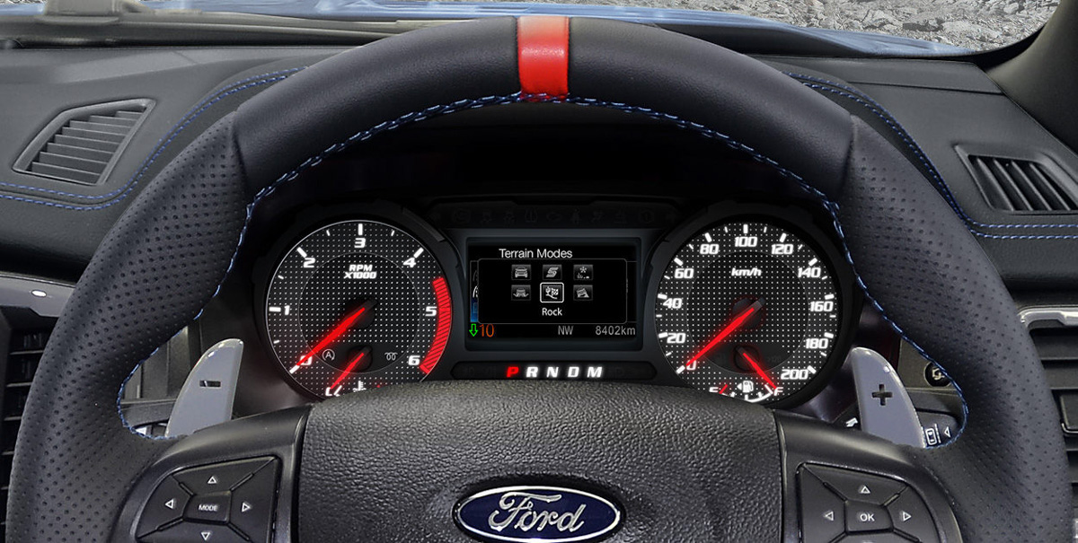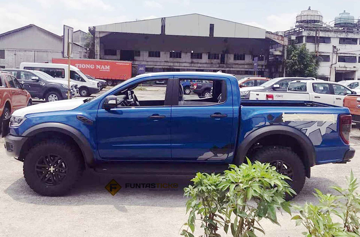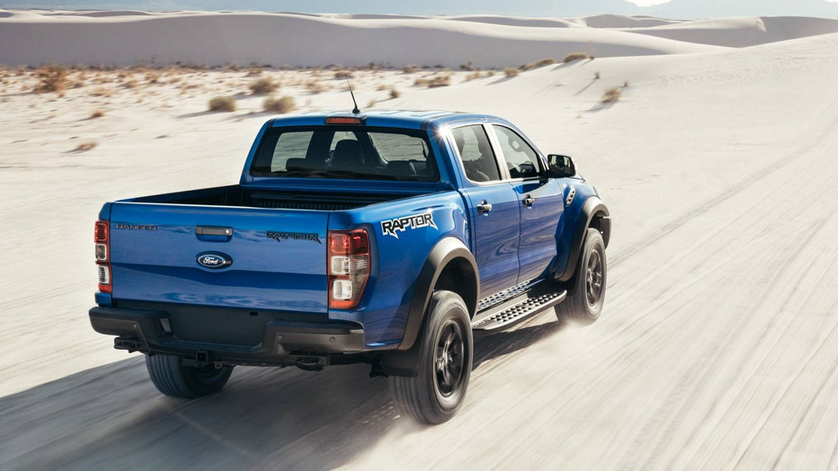 原厂也为 Raptor 加装了大量的护板以有效保护车身与底盘结构,其中翼子板的黑色轮框采用特制的复合材料以便能承受越野时带来的撞击。为了提升越野能力,Ranger Raptor 的离地高度提升至283 mm,接近角(Approach Angle)为32.5度,纵向通过角(Ramp Angle)及离去角(Departure Angle)两个皆为24度。车尾方面,Ranger Raptor 直接采用可拖物的后拖杠设计,并具备两个可承受最高3.8吨重量的拖物钩,越野实力不容置疑。