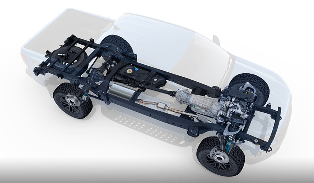Ford Ranger Raptor 基于现行款 Ranger T6 开发而成,这也是 Raptor 这个性能代表名称首度出现于 Ford 经典皮卡车款 F-150 以外的车款;原厂在 Ford Ranger T6 的基础上进行了大量的改造,当中就包括了采用高强度低合金钢的加固底盘车架,令 Ranger Raptor 的越野能力大大提升了不少。而动力配置上,Ranger Raptor 搭载了全新的 EcoBlue 2.0L 双涡轮增压柴油引擎,最大马力为 210 hp ,峰值扭力更高达 500 Nm ,搭配全新的 10 速自排变速箱,这具沿自 F-150 的 Getrag 变速箱采用轻量化的高刚性材料制成,具备更耐用的特性。
