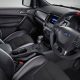 悬挂系统方面,Ranger Raptor 的后悬吊改用与 Everest 一样的瓦特多连杆式结构(Watt Link),并增强了前悬吊的避震器顶座,同时采用 46.6mm 的 Fox Racing Shox 避震器,搭配17寸的轮圈与尺寸为 285/70的 BF Goodrich 全地形轮胎,此外 Ranger Raptor 也采用前后碟刹的设计,其中前方的双活塞卡钳比普通版 Ranger 还要大上9.5 mm,规格非常“凶悍”。
