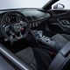 在外观上,小改款的 R8 导入了 Audi 最新的设计语言,大幅融入了硬线条设计,其中前脸造型不但更加扁平,招牌的六角形水箱护罩还采用了全黑式设计,搭配两侧超夸张的进气口设计,加上全新设计的 LED 头灯组,令整个车头看起来更加凶悍杀气。至于车尾的导风口则改成一体式设计,遍布整个车尾,搭配下方两侧的超大型双边单出排气管设计,以及扁平式的 LED 尾灯组,令小改款的 R8 更具跑风。