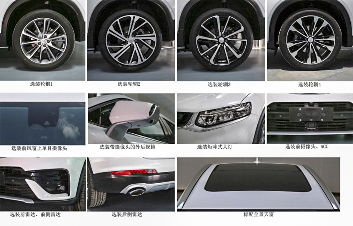 之前曾经有消息指出 FY11 Coupe SUV 会是博越的 Coupe 版本,但是根据中国工信部的信息 FY11 在车身尺码上均比博越略大,因此是博越 Coupe 版本的可能性并不大。在外观上可以看到 FY11 的前脸设计与之前的 Geely 车款有着不小的差异,其中招牌的回纹涟漪式水箱护罩变得更为扁平,搭配锐利的矩阵式 LED 头灯组设计,以及大型的保险杠进气口设计,运动气息颇为浓厚。而车尾部分除了溜背式的尾箱设计以外,还可以看到双边单出的排气尾管设置,同时还备有数款造型不错的轮圈可选,整体可说相当地帅气。