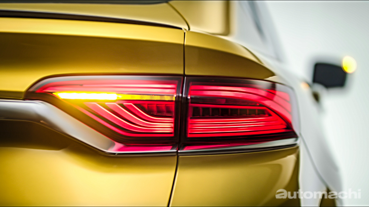 作为运动化的 Coupe SUV ,Geely FY11 依旧采用家族式的回纹涟漪式水箱护罩,不过更为扁平紧凑的设计,加上保险杠侵略性十足的大型进气格栅设计,还有锐利的矩阵式 LED 头灯组,夸张的设计令整个车头看起来更为犀利有神。而从影片中可以看到,全 LED 的头灯组除了设计前卫的 LED 日行灯光条以外,大灯还备有主动式自动调整功能,点亮后视觉效果可说非常出众。