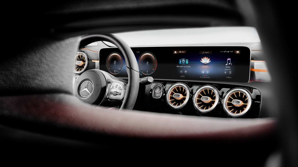 尽管 2019 CLA 在身形上比上一代车型长了48 mm 并宽了53 mm,而轴距也增长了30 mm达到2,729 mm的水准,不过室内空间表现并没有因此而有所增长,尽管新一代 CLA 的后座腿部空间多了1 mm(!),不过尾箱空间比起上代车型却少了10公升,只有460公升的容量。而内装部分,由于 2019 CLA 直接沿用了 A-Class 的仪表板,因此一样备有分别为数位化仪表与新一代 MBUX 主机荧幕的双12.3寸大型液晶荧幕设定,其中 CLA 的 MBUX 多媒体资讯娱乐系统除了拥有 A-Class 的AI声控功能以外,原厂这回还导入了手势感应功能,车主再也无需使用扶手处的触板,只需透过手势就能直接进行一系列的功能操作,更为便利。