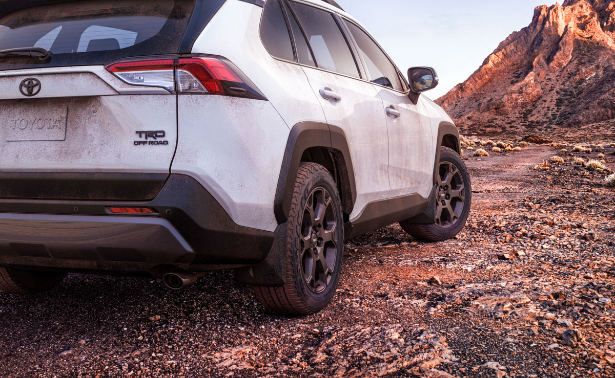 除了视觉上的改装,TRD 也针对硬件进行了越野式的升级,其中新车的悬挂系统就进行了强化,换装运动弹簧及硬度更高的阻尼,在增强回弹率的同时还能提升刚性及提供更好的支撑。此外,原厂还为这款 TRD 版 RAV4 配上了原厂特别要求开发的 Falken Wildpeak A/T Trail 全地形越野轮胎,采用特制的符合材质打造而成,足以应付更为激烈的硬派越野路段。