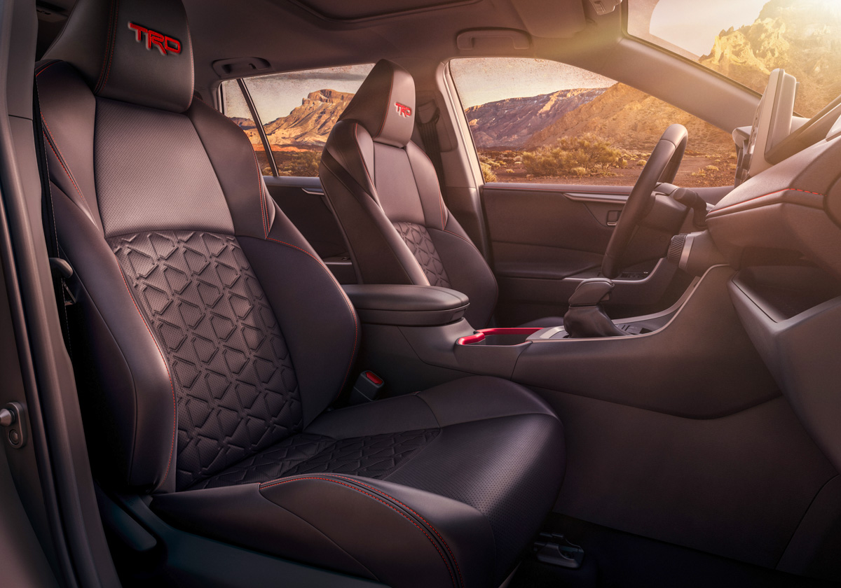 内装方面,TRD 也同样进行了不少为越野而作出的改动,当中就包括座椅采用了名为 SofTex 的特殊材质皮革包裹,除了更轻盈以外还具备更佳的耐用性。而设计颇为运动化的座椅还带有 TRD 标识,加上车门、中控和座椅等部分都加入了凸显运动感的红色缝线,整体看起来相当美观。至于在动力配置部分这款越野版的 RAV4 则没有进行升级,所搭载的 2.5L Dynamic Force Engine 可产生205 PS的最大马力,搭配8速的自排变速箱,并配有全时四轮驱动系统。