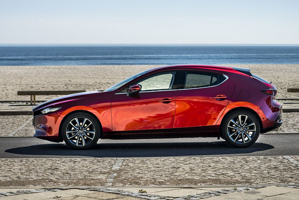Mazda3 是首款采用 Mazda 全新的平台以及 Skyactiv-G 引擎的车款,这款新车的代号为 BP 。在设计风格上, Mazda3 BP 采用了在2017年东京车展上 Kai 概念车的轮廓,整体变得比起上一代车型更为低矮,同时在掀背车型的车尾也变的更为圆润。至于在 Sedan 车型方面我们可以看到 2019 Mazda3 看起来有点像是 Mazda6 的感觉,同样带有非常富张力的车身线条。在车室的空间上因为采用了特别设计的 Torsion Beam 后悬吊还有2,725 mm的轴距,因此 2019 Mazda3 将会有比起上一代车型更出色的空间表现但是操控表现不会收受到影响。