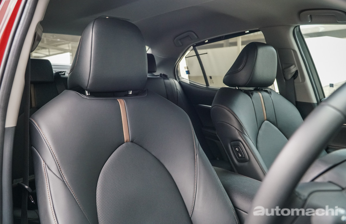 尽管引擎没有更新,不过在配备方面新一代的 Camry 总算还可以见人,其中就包括了一对8向电动调整的前方座椅、具备电动调节功能的方向盘、8寸的触控显示资讯娱乐主机、10寸的抬头显示器、9具喇叭的JBL高级音响系统、电子手刹与 Brake Hold 功能、无线手机充电座以及内置行车记录器等等。至于在安全配备方面,原厂还导入了 Toyota Safety Sense 这个先进的主动安全配备,包含了预防碰撞、车道偏移警示与辅助、盲点侦测与后方横向来车侦测、自动远光灯等功能,而气囊也和泰规一样备有7具,在这一点上这回 Toyota 总算是追上同级对手了。