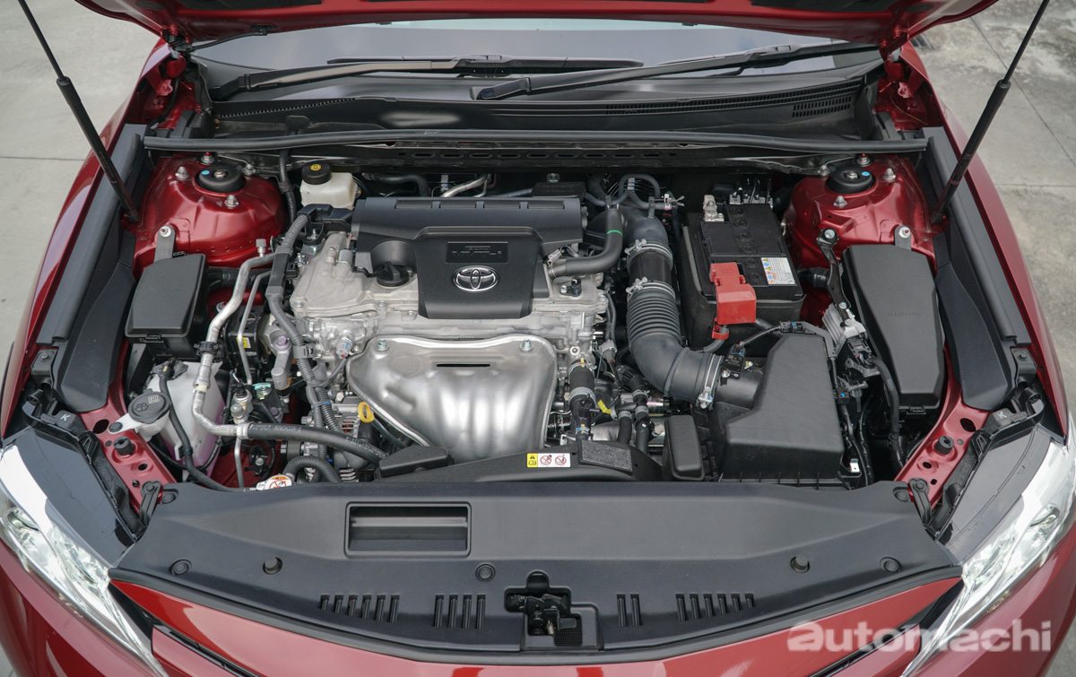 Camry XV70 的车身尺寸为 4,885 mm x 1,840 mm x 1,445 mm,比起上一代车型分别长了35 mm,宽了15 mm及矮了25 mm,轴距也长了50 mm。在外形上,我国的 Camry XV70 采用的是较为成熟稳重的豪华版造型,其中车头的进气格栅由镀铬饰条组成,虽然小编不太会欣赏但估计这样的设计比较能够吸引这一带的 Camry 消费群吧!新车以 CBU 的形式由泰国入口,并只备有单一车型,与泰规版不同的是我国的 Camry 2.5V 将依旧搭载代号为 2AR-FE 的上一代2.5L引擎,而非全新的 Dynamic Force 自然进气引擎,不过原厂声称为该具旧引擎进行了“再优化”,如今拥有184 ps的最大马力,峰值扭力则为235 Nm,并依旧搭配6速的自排变速箱。