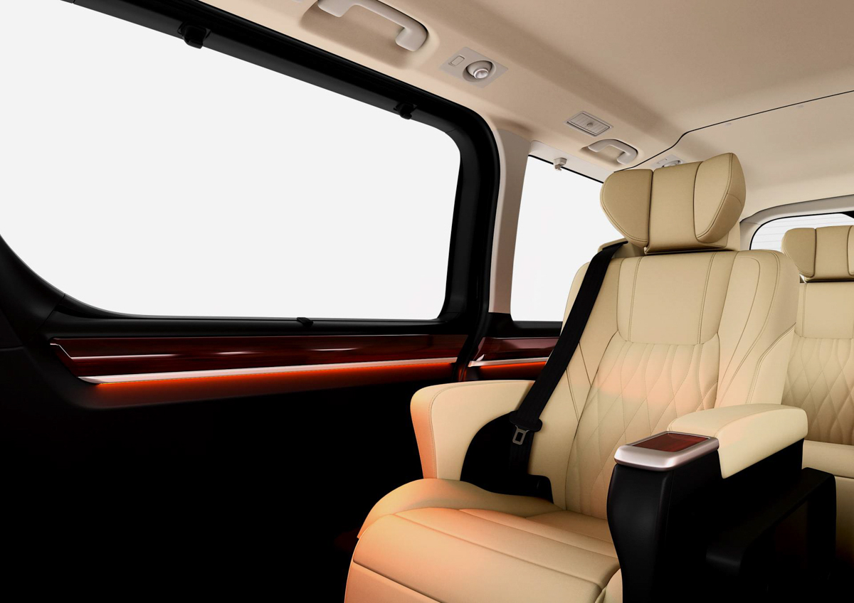 全新的 Granvia 被原厂定位为豪华多人座商旅车,专为酒店、旅游业以及企业买家而设—当然你也可以买来用作家庭车;在澳洲 Granvia 分别有6人座及8人座两个版本,其中6人座版本更是在第二排及第三排(!)都安装了 Alphard/Vellfire 出名的头等舱座椅,就连该座椅的 Ottoman 电动调整伸展脚靠及头枕四向调整功能也一齐入列!而8人座版本也一样在第二排座椅上采用同样的 Captain Seat,奢华度完全不输 Alphard!