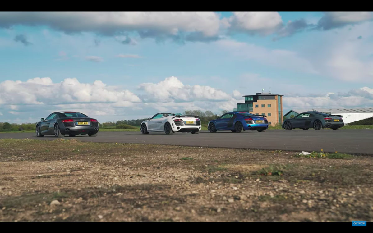 近日,国外的汽车媒体 CarWow 就将4款不同的 Audi R8 合集并进行直线加速测试以及刹车测试。而这4款 Audi R8 分别是2006年的 Audi R8 ,2011年的 Audi R8 GT Spyder ,2014年的 Audi R8 LMX 以及最新款的 Audi R8 Mark2 Performance 。