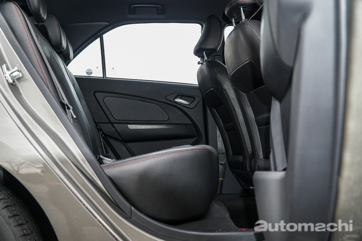 首先先说内部的空间表现, Iriz 面对一个问题就是宽度很好,可是没有长度,其实三个成人坐在后座并不会太幸苦,但是问题在leg room并不太足够,不过这并不是 Iriz 的空间小,而是因为椅子太大张导致,所以在视觉效果上 Iriz 的脚步空间看起来确实好像是B-Segment中最小的,但是在前座我调整到我的表现坐姿之后后座其实还可以有一个拳头左右的空间表现,所以后座乘客还是可以做得比较舒适的,至于头部空间则是至少还有一个拳头,整体而言 Iriz 的空间感并不会有压迫感。