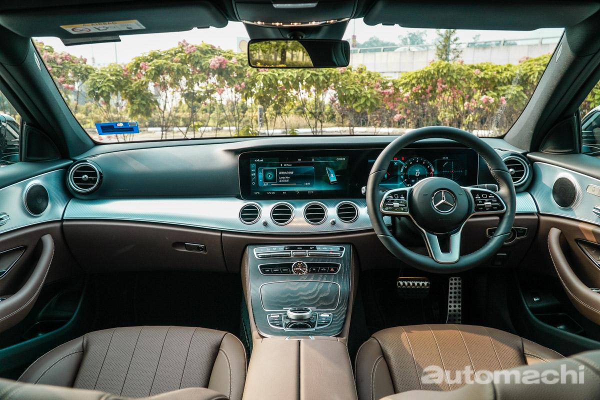 至于动力表现部分,2019 E200 搭载了一具2.0L 涡轮增压引擎,这具引擎能够输出197 Hp的最大马力以及320 Nm 的峰值扭力,并搭配9速自排变速箱。这样的动力输出够用吗?197 Hp 的引擎要带着一辆大约1600 KG 左右的 E200 其实还行,可能在超车或是上斜坡时你会感觉有点不够用·,但一般市区通勤以及高速巡航,2019 E200 还是可以满足到你的。而这个9速的自排变速箱,换挡非常灵敏,当你觉得动力不足,你只需要深踩油门,变速箱立刻帮你降档,提供更多的输出给你。而且可能因为档位多,所以一般市区通勤,你要看到9号档是一件蛮难的事情,不过在高速巡航,那个顺畅度以及底转的感觉十分舒适,小编还蛮喜欢的。