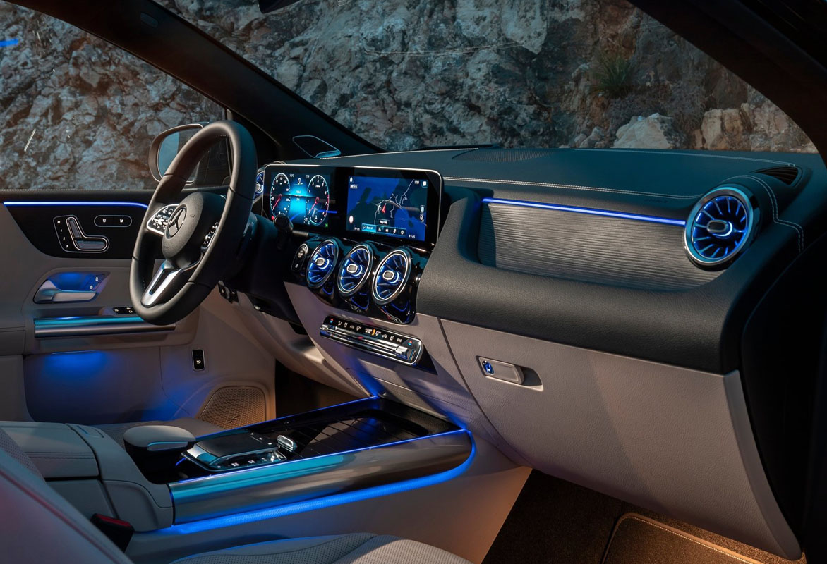 在安全配备上 B200 Progressive Line 比起 A Class 算是好了不少,除了在 A Class 上面的前方撞击预警系统,自动紧急刹车等等功能之外还多了车侧盲点侦测,自动停车辅助系统以及胎压侦测系统。在引擎方面 B200 搭载的是一具1.3L的缸内直喷涡轮增压引擎,最大马力表现为163 PS,峰值扭力250 Nm,匹配的是7速的双离合器变速箱。B200 Progressive Line 在我国的售价为 RM 239,888。