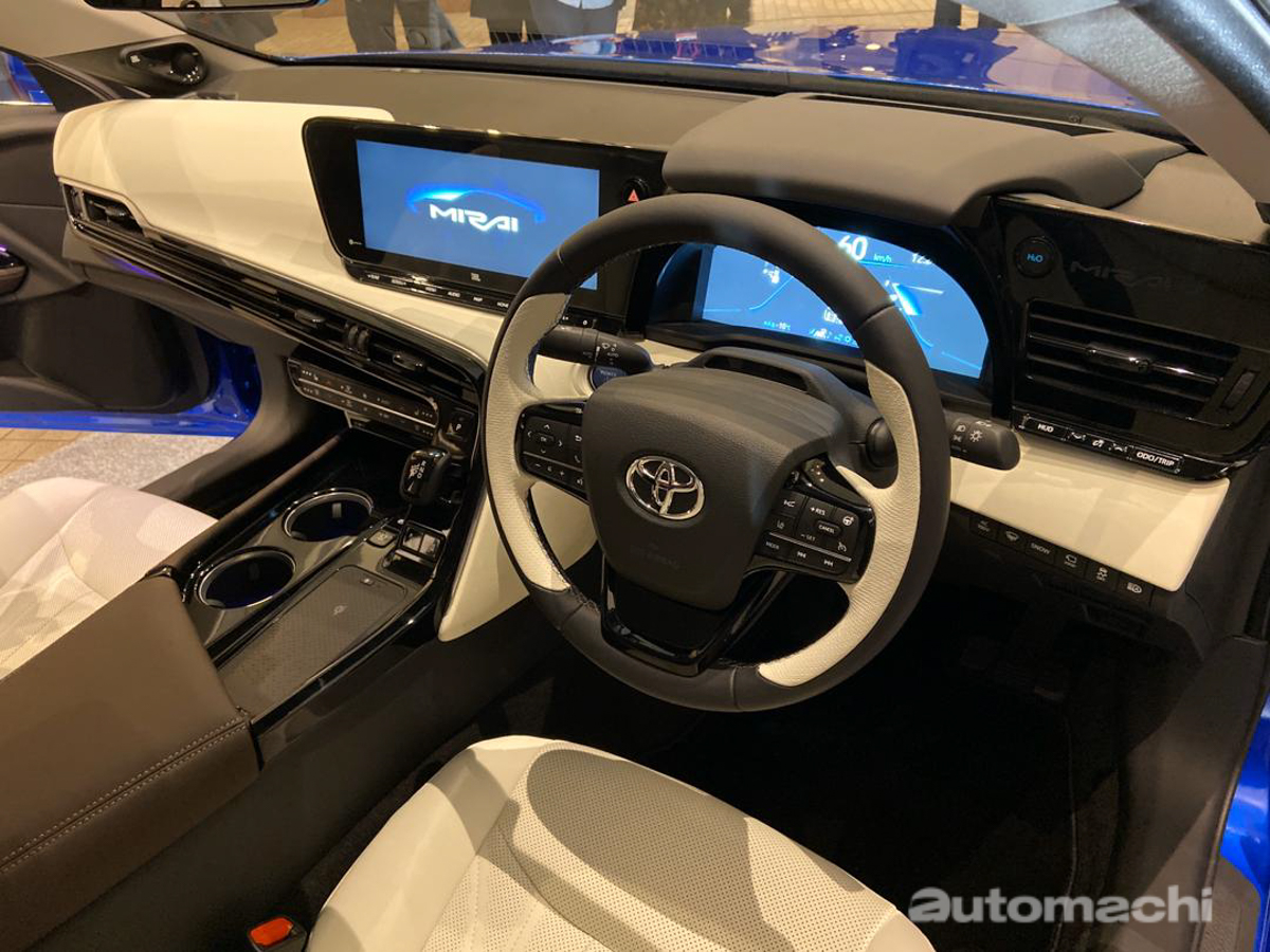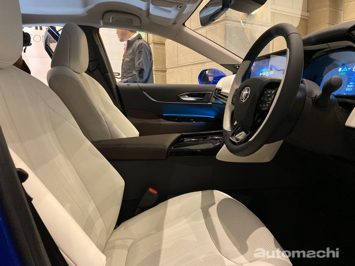 从现场实车可以看到,虽然被称为 Mirai Concept,但是新车的整体造型已经非常接近量产化;在外形上全新的 Mirai Concept 拥有非常低矮的修长车身设计,而车头则与其他新世代 Toyota 车款一样导入了被称为 Keen Look 的家族设计风格,其中大型的水箱护罩就导入了许多精致的镀铬饰条,增添了不少优雅气息,而锐利的 LED 头灯组也让这款氢燃料房车显得更为运动化。至于车尾部分,横贯整个尾门的修长尾灯在两侧还有类似 Supra A90 的线条设计,加上大型的扰流器设计也令 2021 Mirai 具有更多的运动气息。